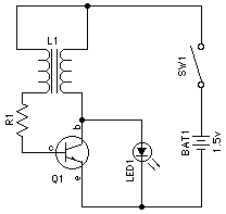 You need to be able to solder and, as a minimum, you will need a soldering iron, solder and wire cutters. This simple circuit pulses an LED to maximum brightness approximately once every 0.5 second. Runs off only 3 volts so you can use two 1.5v cells of any type. A pair of "AA" cells will run this flasher for 6 to 12 months continuously. USES Put it in your car to discourage theft and make it easier to find in a dark car park. Hang it from the bathroom light switch pull-cord so you can find it in the dark. Fit it inside a model aircraft, train or car. CONSTRUCTION Build it on a tiny piece of "Veroboard", stripboard or make a printed circuit board like this one. Double the value of the capacitor to make it flash only once per second (battery cells last even longer). Beginners Guide to Electronics includes full instructions and photographs for building the above LED Flasher Kit project. Simple to make, this torch comprises a High Brightness LED, a transistor, resistor and a tiny coil which you wind yourself. PCB and key fob supplied. The result is an intense beam of light produced from a 1.5 volt mercury cell or a 1.5 volt cell of any type. Battery cell gives at least TWELVE HOURS of continuous use! Lasts for years. Great fun to build, this micro-miniature torch is simple but very useful. Carry it with you to use in an emergency. Handy for finding the keyhole, lighting your way in the dark or looking inside equipment. Instructions, PCB, all parts and battery included with kit. Order as FLICKAR Price £6.95 Can also drive LEDs instead (use 1k resistor with each LED) Discount for quantity Why not use several to add interest to your Christmas Tree, plant pot or window display? A tiny printed circuit board that flashes two lamps alternately to simulate a coal fire or oil-burning lamp. Return to SatCure Hobby Index page Copyright ©1999 Martin Pickering This Web Site was produced entirely on a Macintosh Computer.