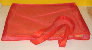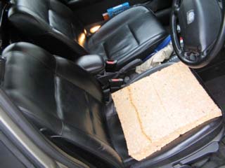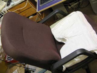 | In my office I use a similar foam wedge with a large "V" cutout. I shoved it into a "Tygan"* bag. This is not quite as effective but more comfortable for long-term sitting but I spend most of my day on it so it can't be that bad! *("Tygan" is the material used to make really strong mailing envelopes. This one is a big mailing bag that arrived with something my wife ordered from a catalogue). |